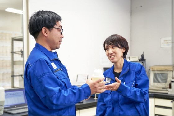 たとえばラベルが剥がれて成分が分からなくなった薬品が持ち込まれた際には、専用の分析機器を使って成分を特定し、最適な処理方法を提案します。また工場見学の案内役も任され、当社の環境保護への取り組みをお客様に説明する役割も担っています。